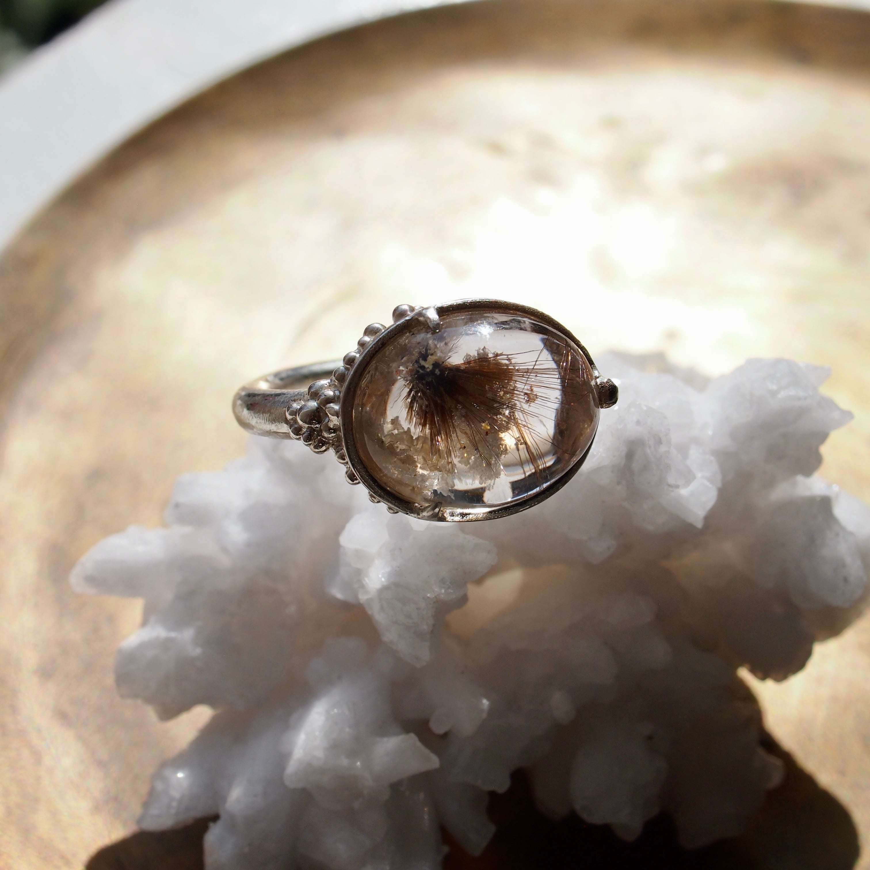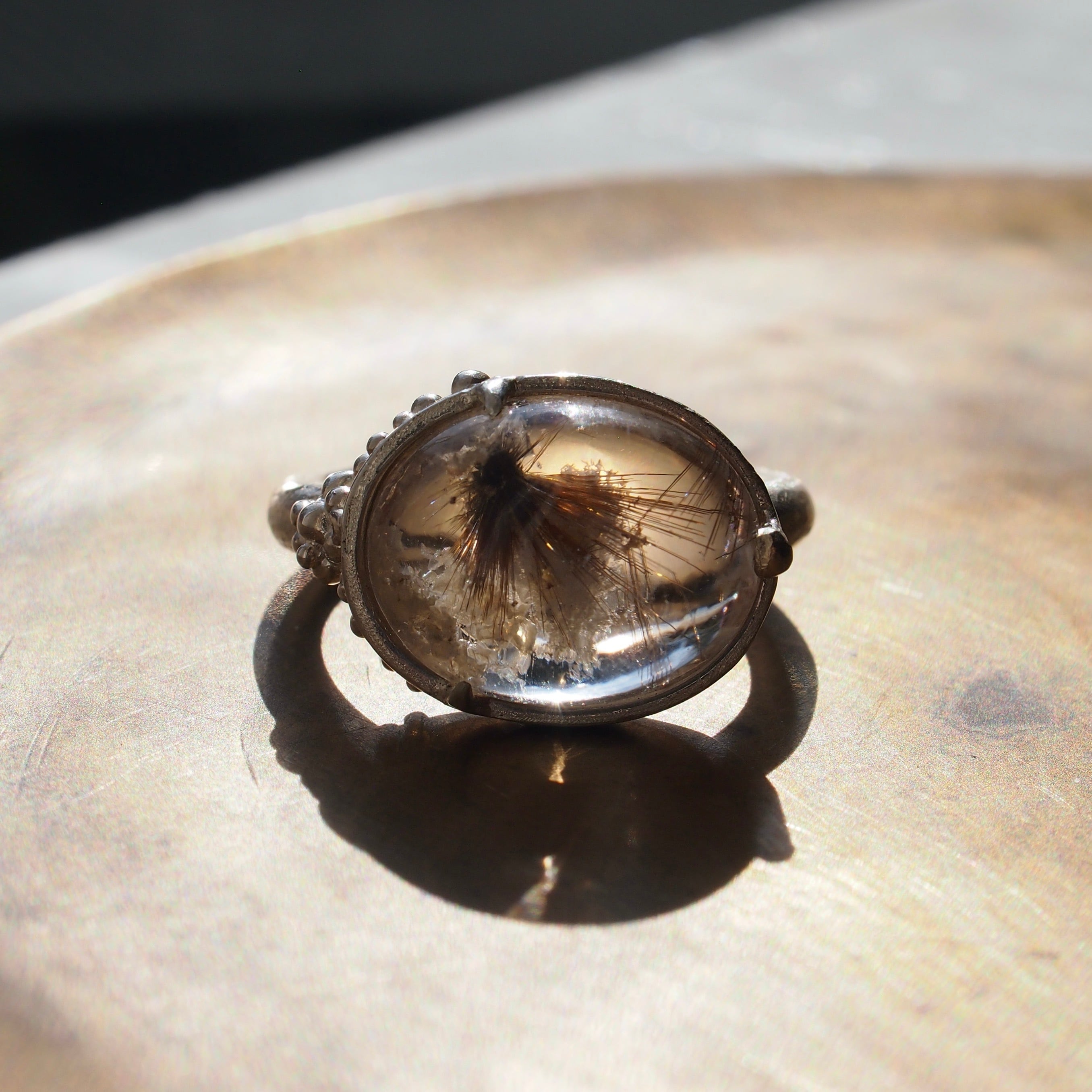 ルチレイテッドクオーツ 粒で装飾したリング